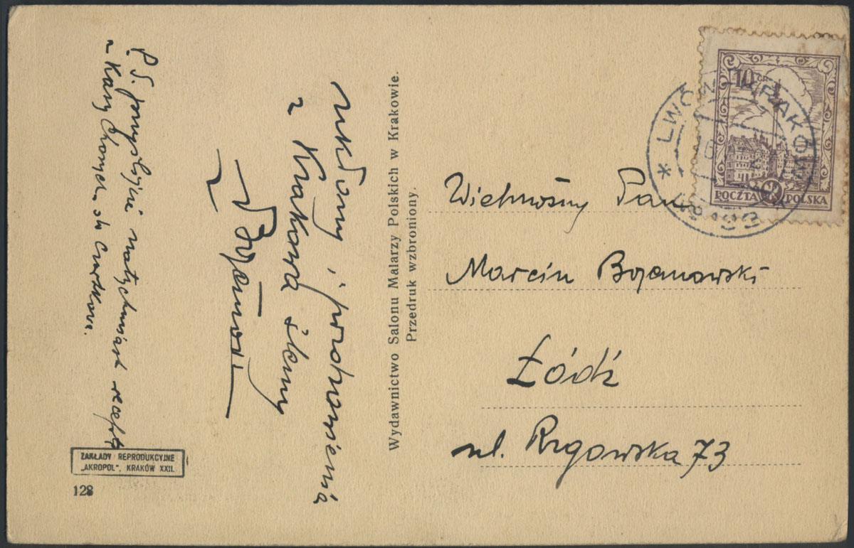 1927 kartka nadana w ambulansie pocztowym na trasie Lwów - Kraków nr 132. | Fi.209 |